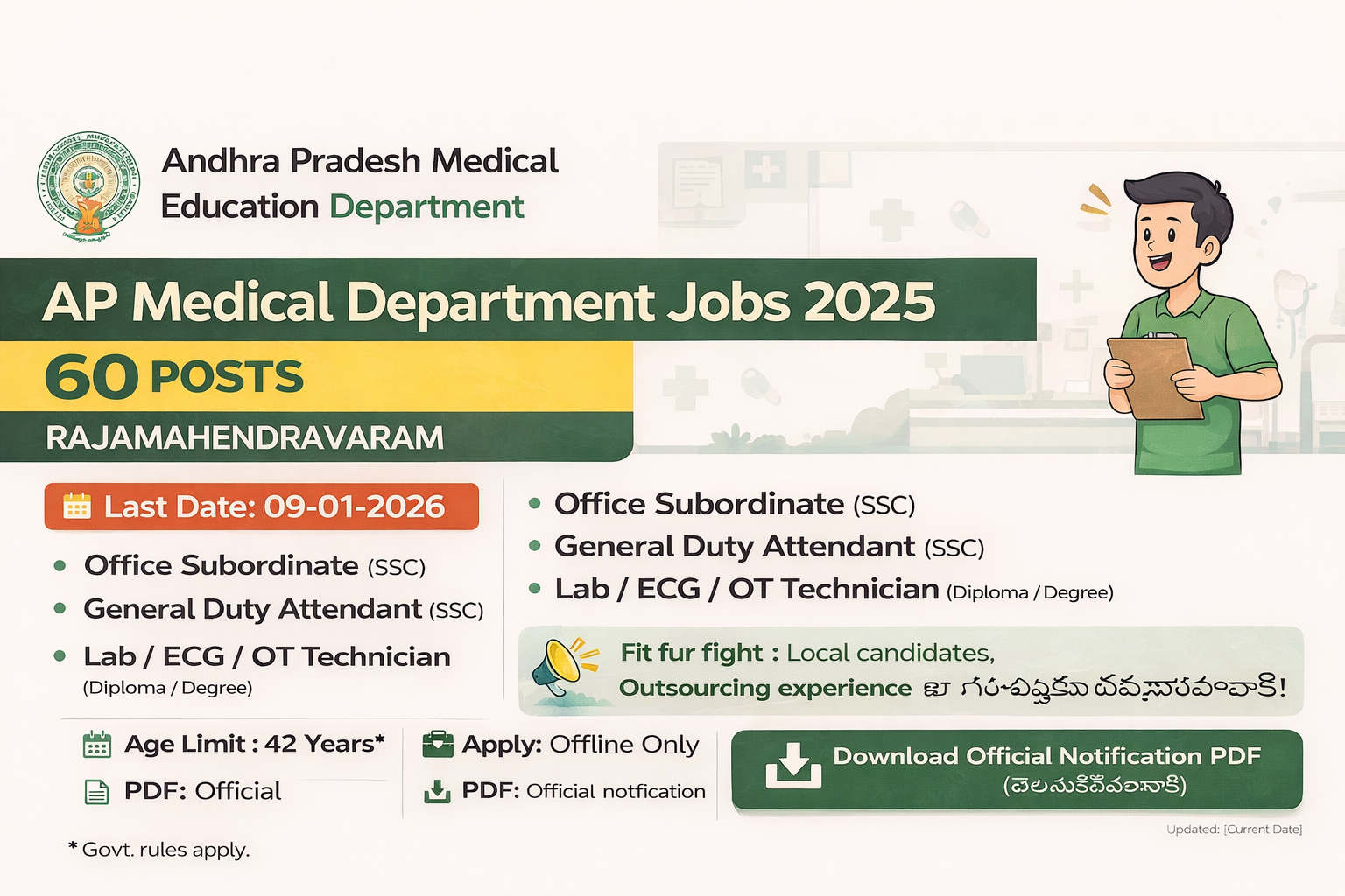 AP Medical Department Jobs 2025 – రాజమహేంద్రవరం GMC & GTGH కాంట్రాక్ట్ / అవుట్సోర్సింగ్ నోటిఫికేషన్ వివరణ